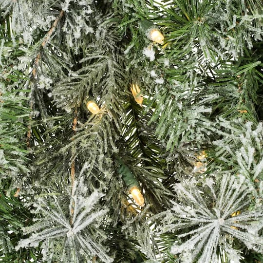 Incorporate bright and modern holiday décor into your space with this beautiful wreath. A great accent for your front door or mantle, this wreath comes pre-lit with warm white Dura-lit LED mini lights that run on 120V AC, and features a beautifully flocked blend of PE, PVC and Hardneedle tips. The wreath measures 60″ across the diameter from the end of one tip to another. This wreath can be used just as it is, or customize it with your favorite ornaments, ribbons, or holiday picks.