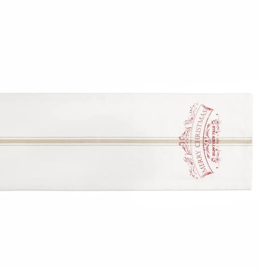 Measuring 14″ x 72″, this runner is appropriate for a table that can seat 4 to 6 people. A printed table runner with classic Christmas style is a classic way to add holiday cheer to your home. Quality made with 1″ hem and mitered corners for an upscale finished look. This elegant table runner is sure to add a festive touch to your table. Great for entry way tables, low book shelves, dining tables, or other surfaces of your home as well. We offer delightful home products including themed napkin rings, placemats, table runners and tablecloths.