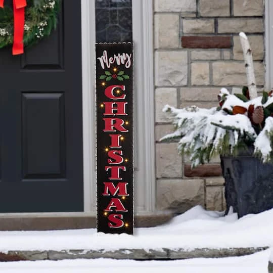 Welcome guests or simply add a bit of festive cheer to any space with this Merry Christmas porch sign. The Christmas inspired colors blend with seasonal icons and add softness and texture to any space. Hang on your front door, lean against a wall or use in any space that needs some festive cheer.