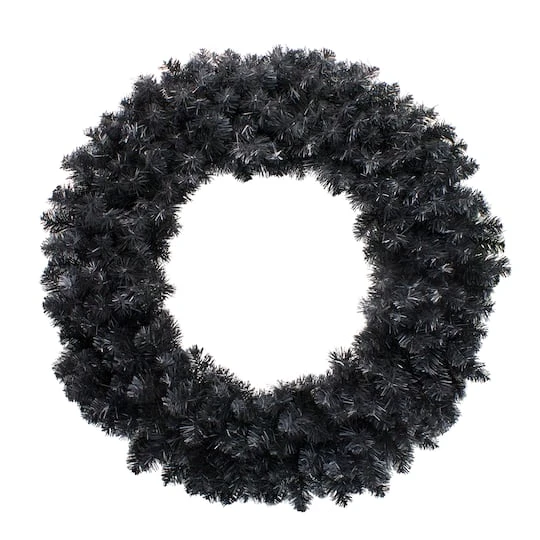 This black Colorado Spruce artificial Christmas wreath features thick black tips to create a full luxurious look. Decorate with ornaments garland ribbon or lights or leave plain for a simpler look. This wreath works perfectly at home or at the office bringing a bit of holiday cheer wherever you go.